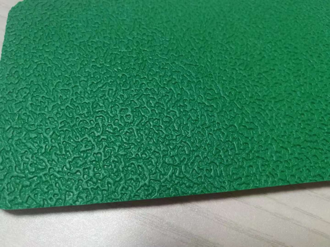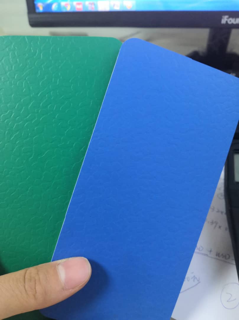 Sand Surface : BWF Approved 4.5 MM PVC VINYL FLOORING TOTAL THICKNESS – 4.5 MM BWF approved Color: Green PVC Vinyl flooring: - 4.5 MM Texture : Sand Finish (Given price inculde Material, & Installation )
