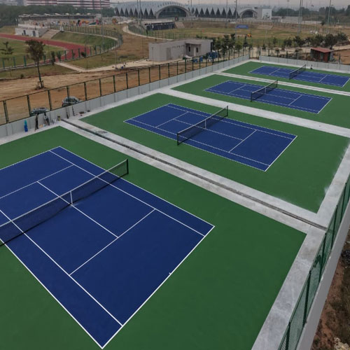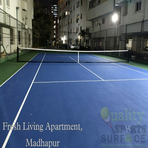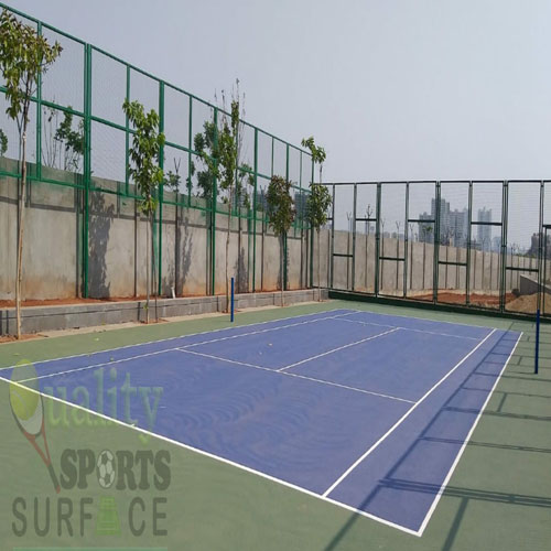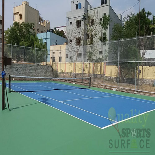 QSS installs 8 Layers Cushioned system (1st Layer – Bio Cum Primer, 2nd Layer – Resurfacer, 3rd, 4th & 5th Layer Cushioned, 6th Layer – Base Coat of Synthetic Paint) and 5 Layers Non – Cushioned System (1st Layer – Bio Cum Primer, 2nd Layer – Resurfacer, 3rd Layer – Base Coat of Synthetic Paint and 2 Top Coat Synthetic Paint) tennis surface using QSS’s material. This is best suitable for outdoor courts but are used for indoor courts as well.