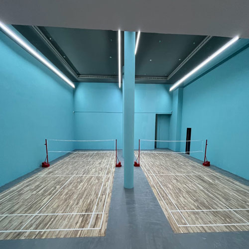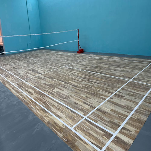 Wooden Badminton Flooring offers a premium playing surface designed for professional and indoor courts. Made from high-quality hardwood, it provides excellent shock absorption, consistent shuttle bounce, and superior grip, helping reduce player fatigue and improve performance. Its natural finish gives the court a professional appearance and long-term durability when properly maintained.